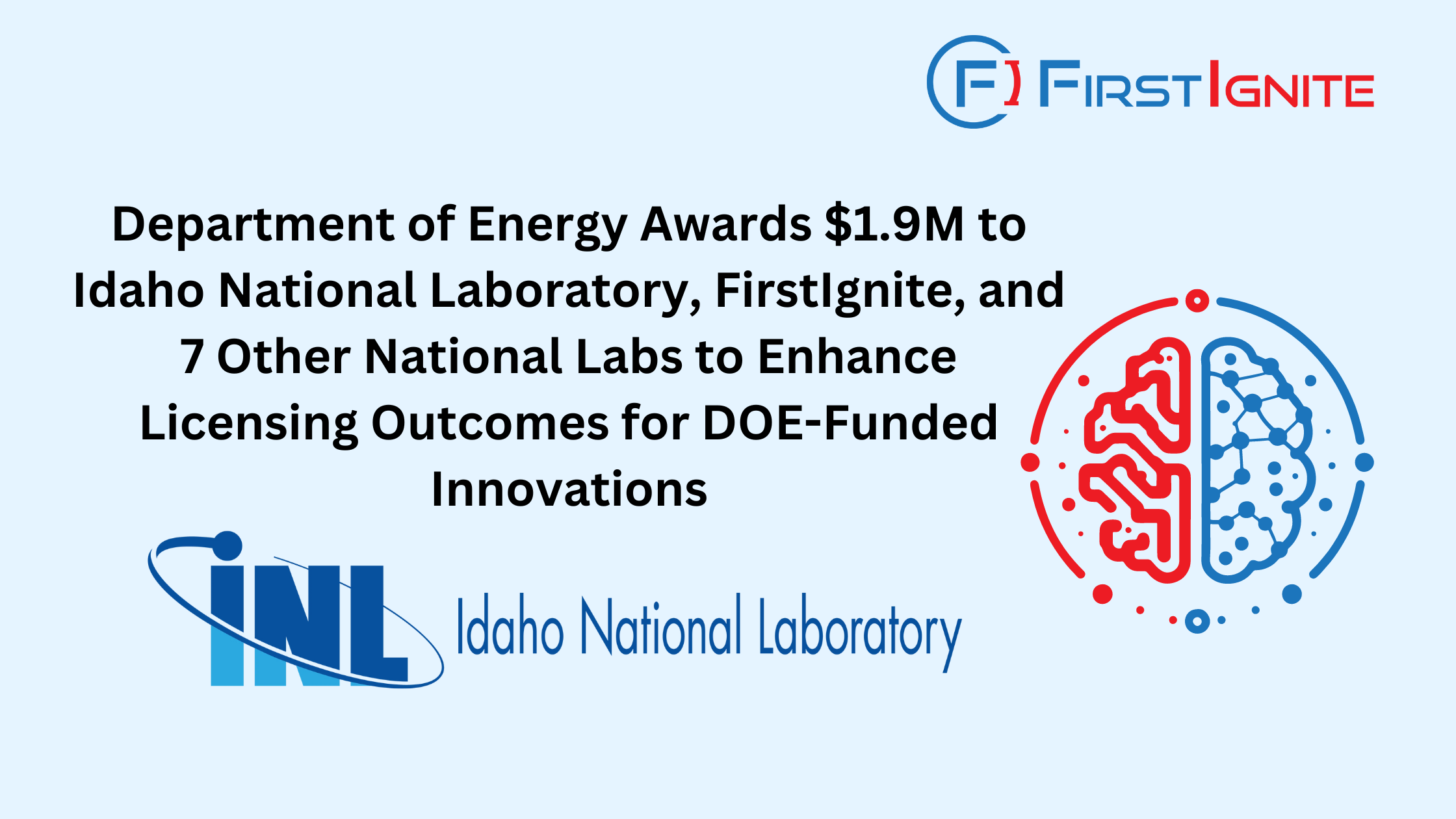 Idaho Falls, ID— June 25th, 2024 — Idaho National Laboratory (INL), in collaboration with FirstIgnite and seven other national laboratories, has been awarded a $1.9 million grant by the U.S. Department of Energy (DOE). The grant supports the AI Technology Licensing Accelerator Solution (ATLAS), a pioneering two-year project designed to enhance licensing outcomes for DOE-funded innovations.
