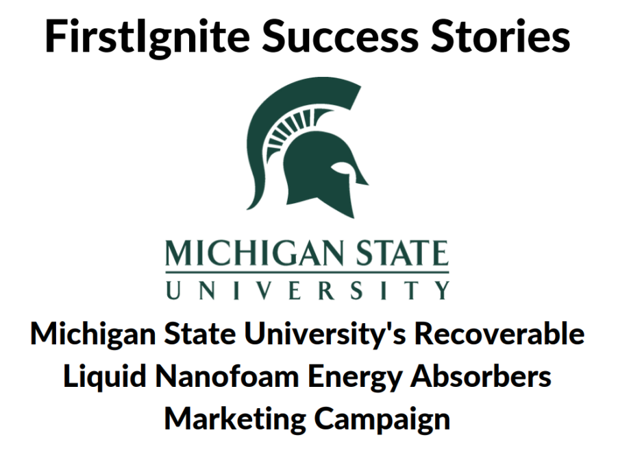 FirstIgnite and Michigan State University partnered together this Summer to increase corporate engagement support for the lead inventor, Dr. Weiyi Lu, and to further develop the understanding of a novel energy absorption system consisting of a non-hazardous liquid, proprietary nanoporous particles, and selected levels of additional gas.